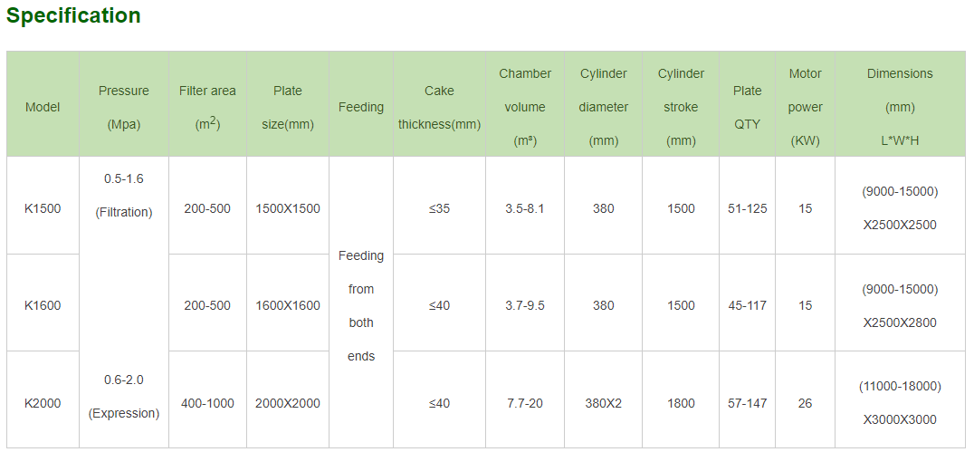 自动化系统可实现连续运行,成本低  “进料-出料-洗涤”完成循环仅需30分钟。我公司专业生产板框压滤机、厢式压滤机、高压隔膜压滤机、快开式压滤机、自动洗布压滤机、顶置悬挂式压滤机、低温真空压滤机脱水干燥一体机等。  由于其众多的优点,我们的压滤机已广泛应用于各个领域。